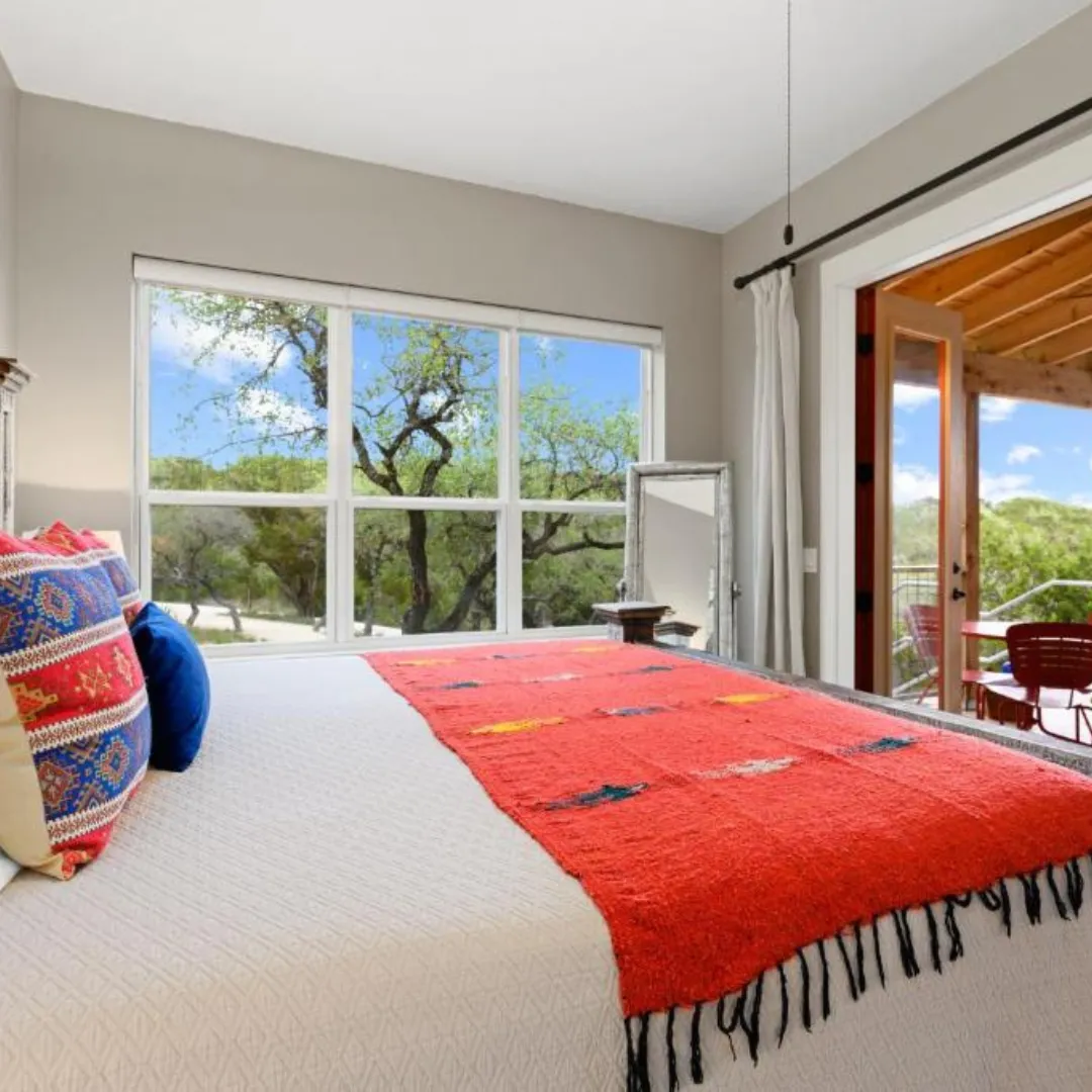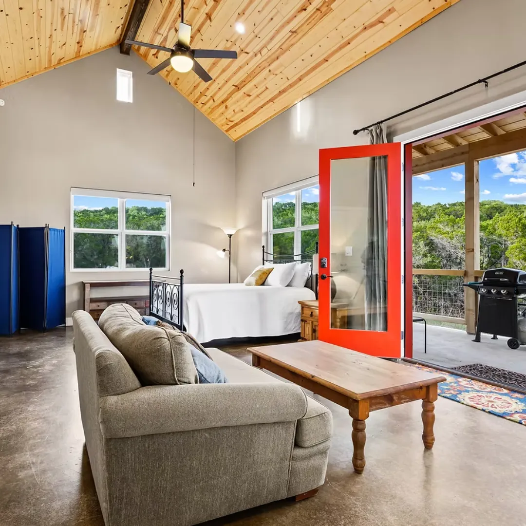 Come stay on 13 acres in the Texas Hill Country with a creek, hiking trails, and incredible views.